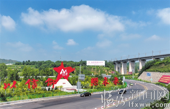 临汾新闻网讯 近日,安泽县高速公路出口“以信仰 照未来”醒目标语成为美丽的风景线。近年来,为了让人们更好地了解革命老区安泽的红色文化,安泽县立足红色资源优势、传承光荣革命传统,探索了一条“党建+红色”的旅游发展路径,红色旅游正在如火如荼地开展。