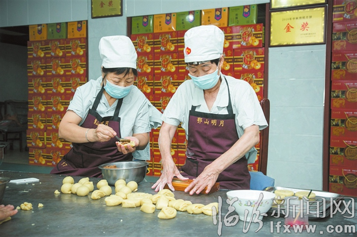 临汾新闻网讯 随着中秋佳节的临近,乡宁县传统手工空心月饼进入热销期,街头巷尾到处可见制作月饼的忙碌身影。图为9月4日,在乡宁县市级非物质文化遗产“千层空心月饼”传承人张瑞琴月饼店,工作人员在加工月饼。