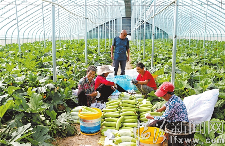 临汾新闻网讯 9月13日,农民在襄汾县南辛店乡大陈村大棚蔬菜产业基地采摘西葫芦。