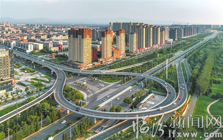 临汾新闻网讯 近年来,我市大力推进城市“双品质”建设,高标准构建市区快速交通体系,着力打造“核心内环、快速中环”,道路通行能力大大提升,城市颜值气质不断攀升。图为9月15日航拍镜头下宛若钢铁巨龙纵横交错的五一路快速路和滨河路路网。