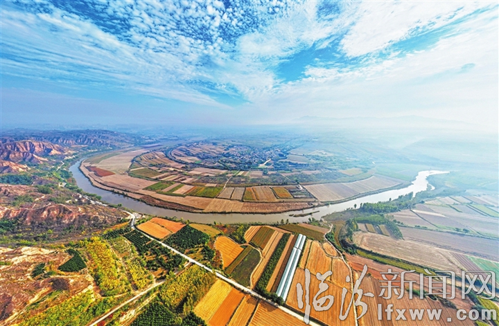 临汾新闻网讯 近日,襄汾县城南汾河两岸秋景如画,古老的丁村在晨雾中若隐若现,清澈的汾河、金色的农田、秀美的山麓与蓝天白云相映成趣,一幅深秋乡村生态画卷徐徐铺开。