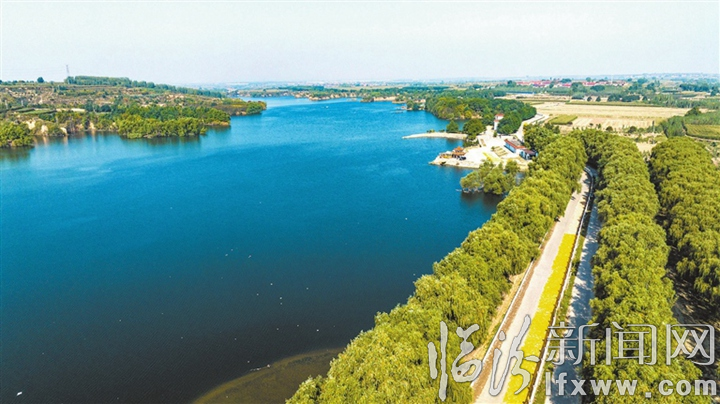 临汾新闻网讯 金秋时节,襄汾县西贾乡双龙湖国家湿地公园波光潋滟,湖边垂柳与周边农田、村庄、道路等交相辉映,勾勒出一幅静谧迷人的生态画卷。