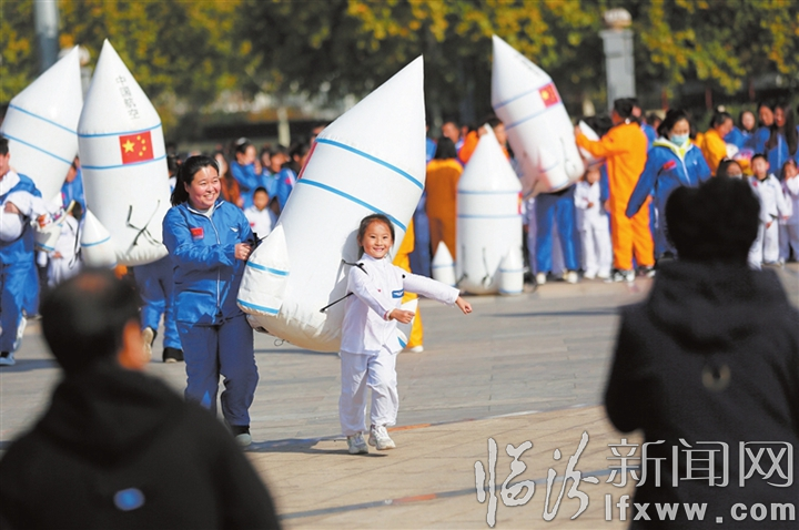 临汾新闻网讯 日前,襄汾县丁陶文化广场上,家长和孩子正在参加亲子运动会。此次运动会以“中国梦·航天梦”为主题,让小朋友与家长、老师倾情互动,在运动中享受童真快乐,在游戏中感受航天科技魅力。