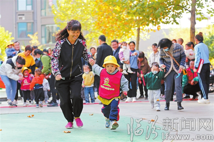 临汾新闻网讯 近日,在襄汾县滨河社区水韵花园小区,清堡儿托育中心开展了主题为“童心向党 快乐成长”的儿童关爱志愿服务活动,通过亲子游戏、唱歌、跳舞等形式激发婴幼儿潜能,感受集体活动乐趣。图为小朋友在家长的陪同下做亲子游戏。