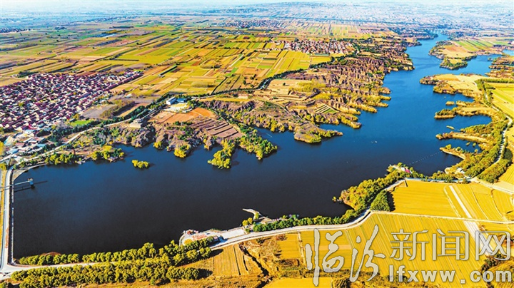 临汾新闻网讯 初冬时节,位于襄汾县西贾乡的双龙湖国家湿地公园,湖面波光潋滟、蔚蓝无垠,湖边泛黄的树木、芦苇随风飘荡,青青的麦苗及周边的村庄、道路相互映衬,勾勒出一幅静谧迷人的生态画卷。双龙湖国家湿地公园总面积598.75公顷,其中湿地面积458.99公顷,是上世纪五六十年代建设的人工湖。从空中俯瞰,两个湖区犹如两条巨龙,呈“双龙戏珠”状,因而称之为双龙湖。