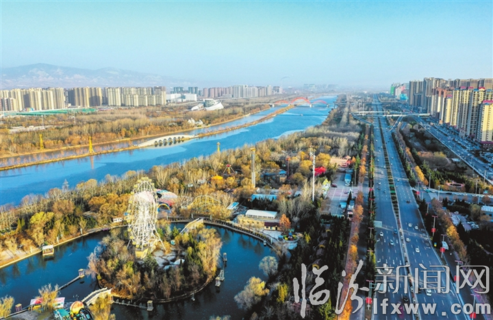 临汾新闻网讯 近年来,我市坚持高位部署、高标要求、高频调度,全力推进生态环保各项工作扎实开展,取得了明显成效。图为航拍镜头下的临汾城区天朗气清、街面整洁,汾河两岸草木葱茏、景色优美。