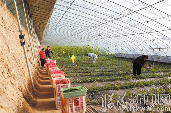 临汾新闻网讯 12月19日,菜农在尧都区晋生源种植专业合作社的设施大棚采摘、搬运西红柿。该合作社的35个设施大棚以种植西红柿、黄瓜、辣椒为主,盛产期日供应市场1万公斤,让老百姓在“家门口”就能吃到放心的绿色蔬菜。