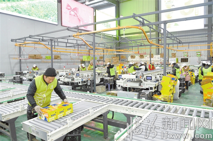 临汾新闻网讯 近日,隰县北纬三十六度电子商务有限公司工作人员正在分选车间装箱。该公司是一家以鲜果贸易为主,集水果种植、收购、加工、批发和进出口贸易为一体的大型农产品企业,目前引进先进的玉露香梨商品化处理生产线,日处理能力达到3万公斤。近年来,该公司已累计为2856户农民销售农产品3400万元。