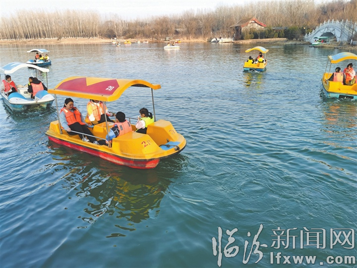 临汾新闻网讯 龙年新春佳节期间,市民游客逛公园、逛庙会、游动物园的热情持续高涨,大家纷纷选择在节日氛围浓厚的游园会“逛、吃、玩”,感受浓浓年味儿。图为游客在公园划船游玩。