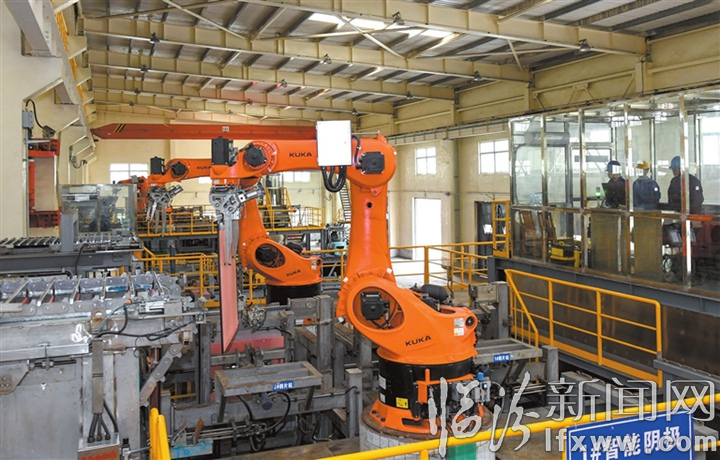 临汾新闻网讯 3月3日,在侯马北铜铜业有限公司年处理铜精矿80万吨综合回收项目车间,智能机械臂在流水线作业。该项目采用当下先进的冶炼工艺流程,充分利用物联感知、信息集成、大数据分析、移动应用等先进技术手段,通过信息化、智能化“两化融合”,进一步提升了生产效率。