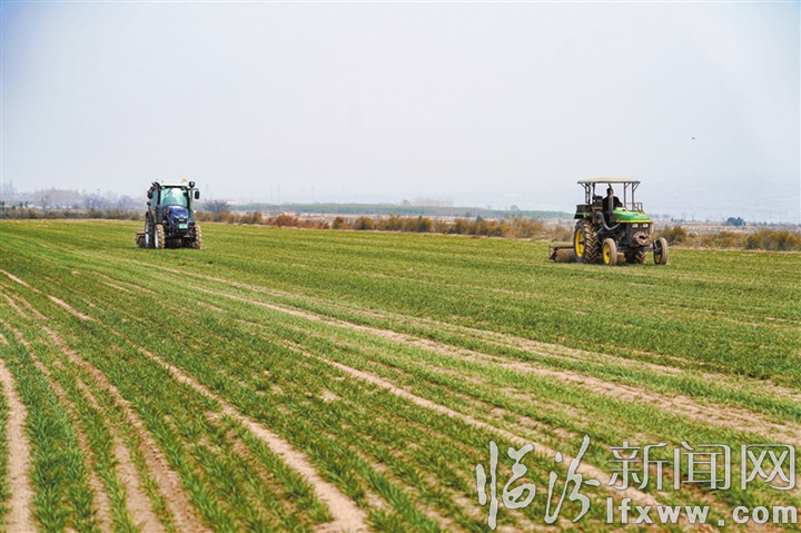 临汾新闻网讯 3月18日,在洪洞县辛村镇的一处麦田里,数台小麦镇压机在田间穿梭作业,一派农忙景象。