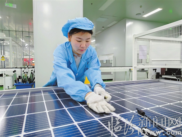 临汾新闻网讯 连日来,临汾晶旭新能源科技有限公司加足马力,日产光伏组件6400块,为绿色临汾蓄势赋能。图为一线工人正紧张作业。
