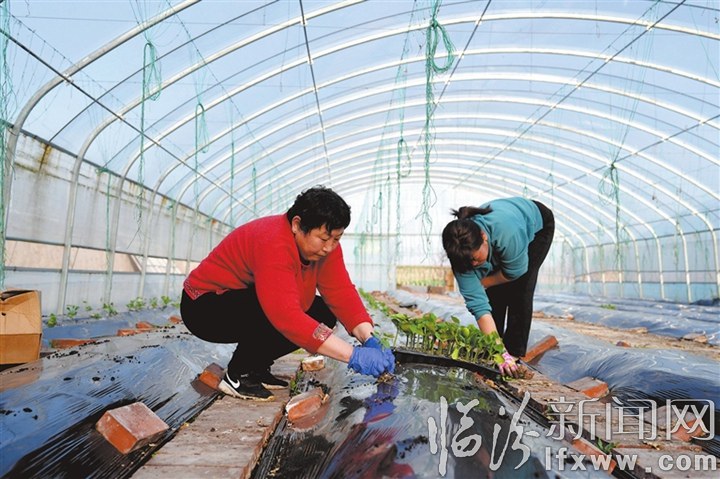 临汾新闻网讯 当前正值春耕备耕的关键时期,襄汾县古城镇北姚村的春秋大棚里,农户正在精心栽植黄瓜苗,为今年的丰产丰收打下基础。图为栽苗现场。