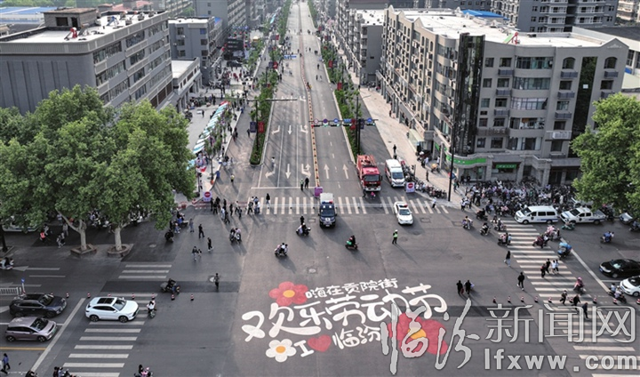 临汾新闻网讯 4月30日,航拍镜头下的“欢乐劳动节,嗨在贡院街”主题logo成为一道风景线。当日,“欢乐劳动节——嗨在临汾贡院街”五一系列文化活动启动。“五一”期间,活动将以富有地域特色的舞台表演、城市漫游、青年集市、节目巡演等形式,创新完善文旅产品供给,满足广大市民、游客假日文旅消费需求。