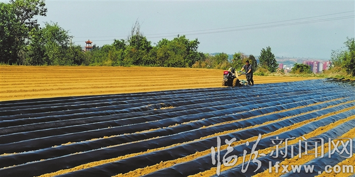 临汾新闻网讯 初夏时节,我市各地农民抢抓农时,积极开展农业生产和管护,田间地头一片繁忙景象。图为襄汾县新城镇柴村的农机手驾驶铺膜机进行铺膜作业。