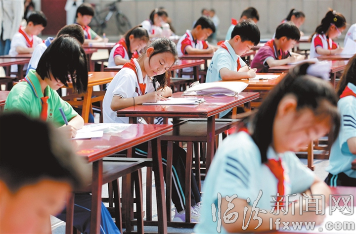 临汾新闻网讯 日前,襄汾县中小学生硬笔书法大赛在该县丁陶文化广场举办,来自全县的225名中小学生同台竞技,比拼才艺,展示硬笔书法风采,传承优秀传统文化,感受书法艺术魅力。图为比赛现场。