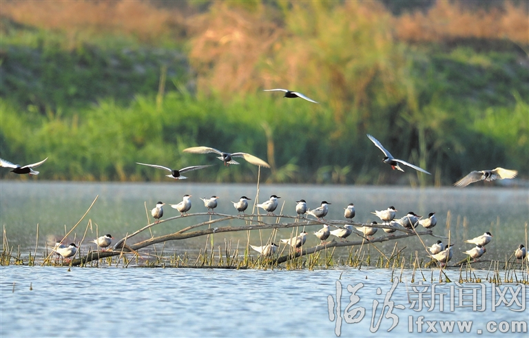 临汾新闻网讯 5月16日,尧都区吴村汾河湿地,成群的燕鸥在这里栖息、飞舞、觅食,与优美的湿地景观共同构成了一道亮丽的生态画卷。今年入夏后,众多稀有鸟类在此栖息,已发现有东方白鹳、牛背鹭、各种燕鸥等,这片湿地已成为众多候鸟、留鸟迁徙栖息之地。
