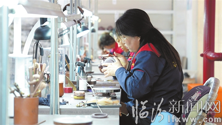 临汾新闻网讯 近年来,乡宁县依托丰富的紫砂资源和厚重的历史文化积淀,打造了紫砂陶小镇,促进紫砂产业与文化旅游融合发展。图为在紫砂陶小镇的景韵鸿鹄紫砂工艺有限公司,工艺师们正聚焦于紫砂壶的创作。