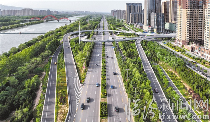 临汾新闻网讯 近年来,我市高标准建设市区快速交通体系,解放路立交桥、河汾一路跨汾河大桥等一座座桥梁凌空飞架,拉开了城市“骨架”、畅通了道路“血脉”,市区“核心内环”“快速中环”的交通路网格局基本形成。图为6月17日航拍的市区五一西路高架桥。