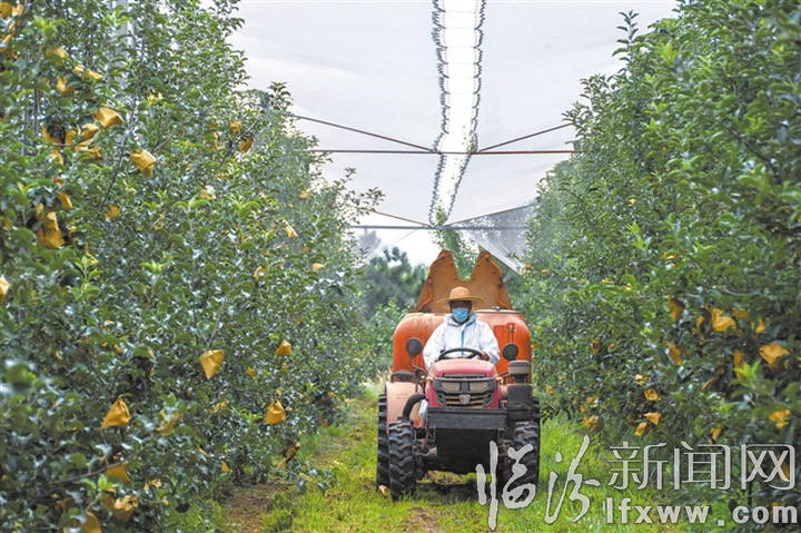 临汾新闻网讯 7月9日,技术员在吉县果之源苹果标准化示范基地为果树喷洒螯合钙。吉县果之源苹果标准化示范基地占地200余亩,实行矮化密植的栽培方式,配套果园支架系统、水肥一体自动化滴水灌溉系统,以秦脆、优质红富士为主要种植品种,目前已经成为吉县苹果产业高质量发展的标杆种植基地。
