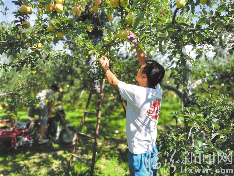 临汾新闻网讯 近日,大宁县太古镇坦达村果农正在采摘早熟的嘎啦苹果。近年来,太古镇积极调整产业结构,在苹果产业发展上,采取早熟、中熟、晚熟的品种搭配栽植模式,提升田地产值和效益,助力农业增效、农民增收。图为果农正在采摘苹果。
