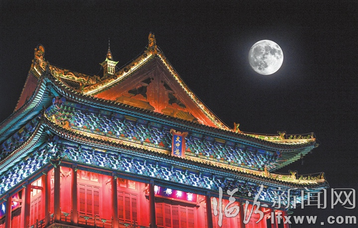 临汾新闻网讯 又是一年中秋至,花好月圆人团圆,9月17日,临汾市区鼓楼上空升起皎洁明月。