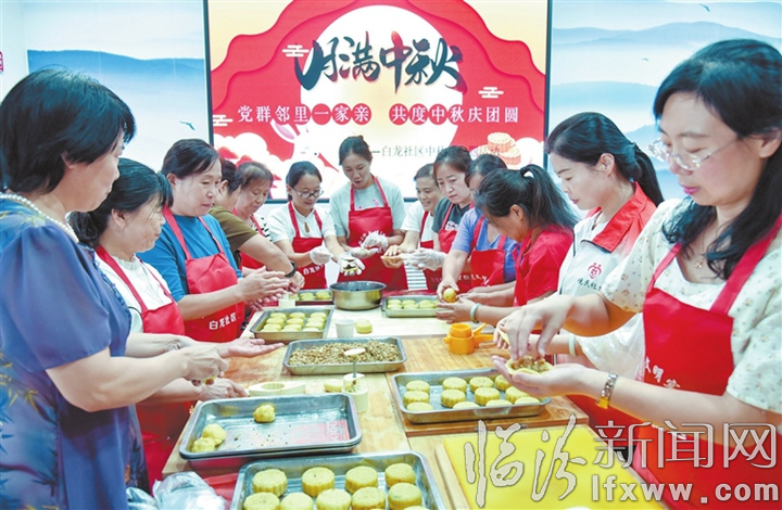 临汾新闻网讯 9月13日,霍州市白龙镇白龙社区热闹非凡,一场以“党群邻里一家亲 共度中秋庆团圆”为主题的活动精彩上演。社区工作人员和居民积极参与包月饼环节,分享着节日的喜悦,现场气氛热烈欢快。