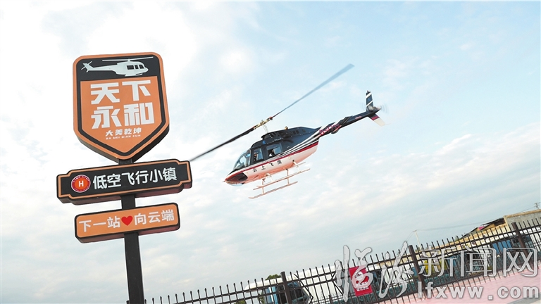 临汾新闻网讯 9月20日,观光体验游客在永和县低空飞行小镇乘坐直升机飞跃黄河。