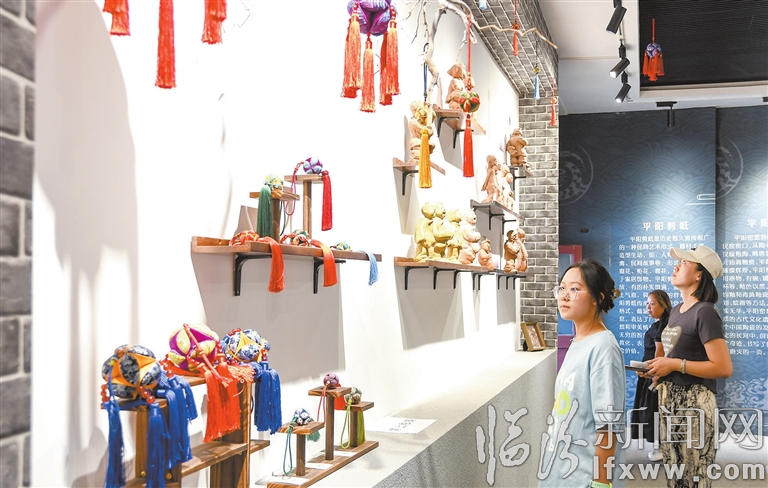 临汾新闻网讯 9月24日,在临汾市铁佛寺博物馆,游客在非遗体验馆参观展品。随着“跟着悟空游山西”活动的深入开展,我市旅游市场火热升温,铁佛寺博物馆设立了非遗体验馆、文创产品馆,通过手工互动体验、公益讲解等活动,全面提升游客的旅游体验,更好地宣传和推介临汾特色文化。