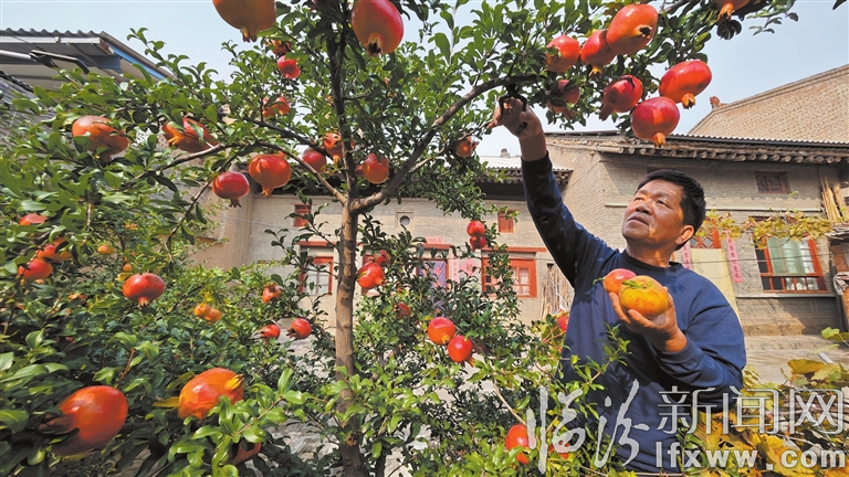 临汾新闻网讯 10月7日,襄汾县新城镇闫店村村民在自家小院中采摘石榴。近年来,新城镇强化庭院经济开发力度,鼓励村民在房前屋后空闲地上种植石榴、葡萄、樱桃等优质果树,既带动了美丽乡村生态建设,又有效地促进了农民增收,助推了乡村振兴。