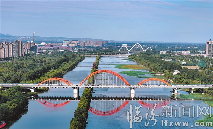 汾河临汾段从南到北,穿城而过。横跨汾河上的大桥,一桥一景,见证临汾城市发展与繁荣的同时,提升了交通容纳力、承载力,缓解了交通压力,拓展了城市空间。