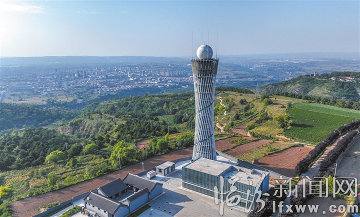 临汾新闻网讯 这是近日航拍镜头下位于浮山县境内的临汾新一代天气雷达。新一代天气雷达的投入使用,将为全市人民生产生活和经济建设“把脉”天象,有效提高气象监测预警服务水平,增强应对气候变化和开发利用气候资源的能力。