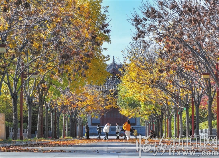 11月4日,在市区古城公园,游客在拍照留念。深秋时节,古城公园色彩斑斓、层林尽染,吸引了众多市民游客前往休闲娱乐。