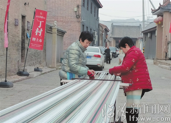 临汾新闻网讯 近日,在襄汾县丁村民俗博物馆景区内,村民在手工制作“丁村土布”。近年来,丁村依托省级非遗“丁村土布”织造传统技艺,从产品设计、市场推广、农户培训到订单生产,实现了“企业+工坊+农户”的产业链模式,为当地经济发展带来了新动能。
