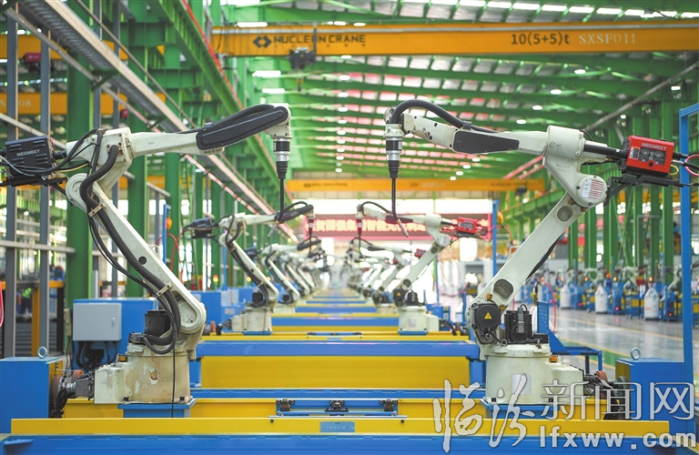 临汾新闻网讯 近日,在侯马经济开发区国强自动化光伏新能源生产基地,激光焊接机器人正在作业。该项目分两期建设,目前均已投产,预计可实现年产能100万吨,年收入达百亿元,带动1500余人就业。
