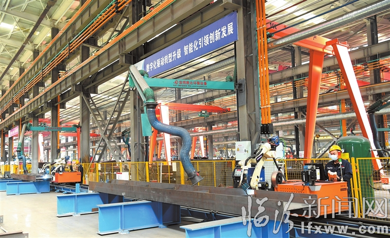 临汾新闻网讯 近年来,山西中部智造科技有限公司大力推进产业数字化,陆续引进了板材激光切割机、数控机床、一键通智能管理系统等,能够完成桥梁钢箱梁、大跨度空间管桁架、装配式钢结构、大口径螺旋焊管、保温管等产品的设计、制造,正在向“国内领先、国际一流”的装配式钢结构建筑系统集成工程服务商大步迈进。图为工人在加工装配式钢结构。