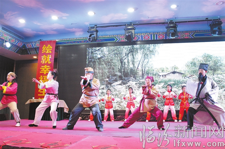 临汾新闻网讯12月22日,临汾市陈式太极拳研究会举办2024年文艺汇演,拳友们自编自演了精彩的文艺节目,大力弘扬太极文化,进一步推进全民健身活动深入开展。图为拳友们在表演穿越剧。