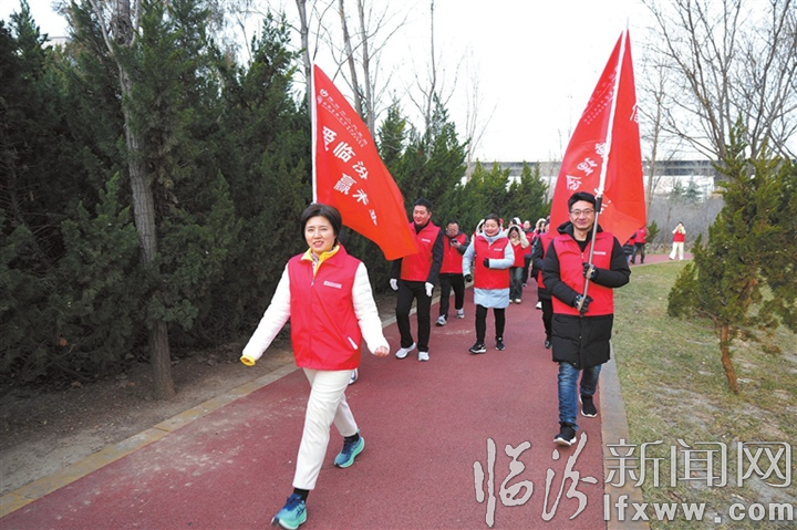 临汾新闻网讯 日前,市人民医院健康管理中心的干部职工在汾河公园进行户外健步走活动。该中心干部职工通过自身行动主动担当起“健康使者”,践行“每天一万步,走出健康路”理念,倡导广大市民养成健康、绿色出行习惯。