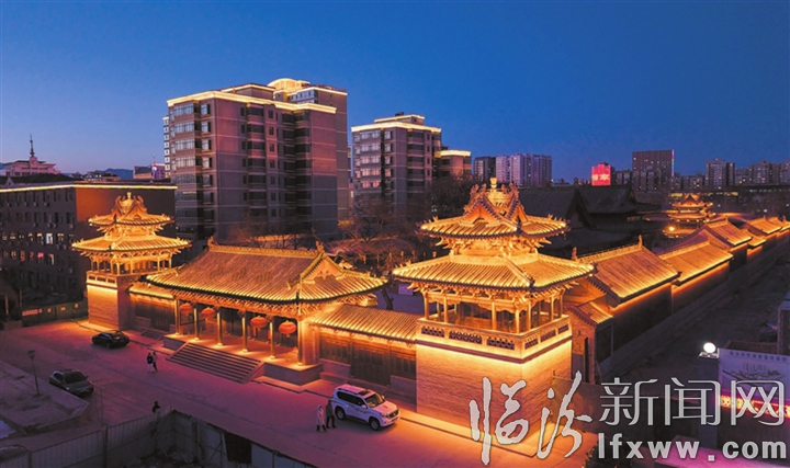 临汾新闻网讯 2月11日,夜幕下的市区关帝庙文物保护和文旅建设项目(已修复完成区域)灯光璀璨,美不胜收。我市坚持“修旧如旧”,高标准、最大限度还原关帝庙的历史原貌,赋予临汾城市文化记忆,成为市区一道靓丽的风景线。