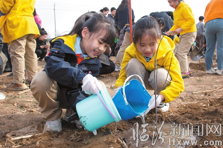 临汾新闻网讯 阳春三月风光好,植树添绿正当时。3月8日,临汾市解放路小学举办了主题为“‘杏’好遇见你,‘橙’心呵护你”的植树踏青活动,让学生从小热爱自然、加强环保意识。图为该校二年级12班的少先队员在参加植树踏青活动。