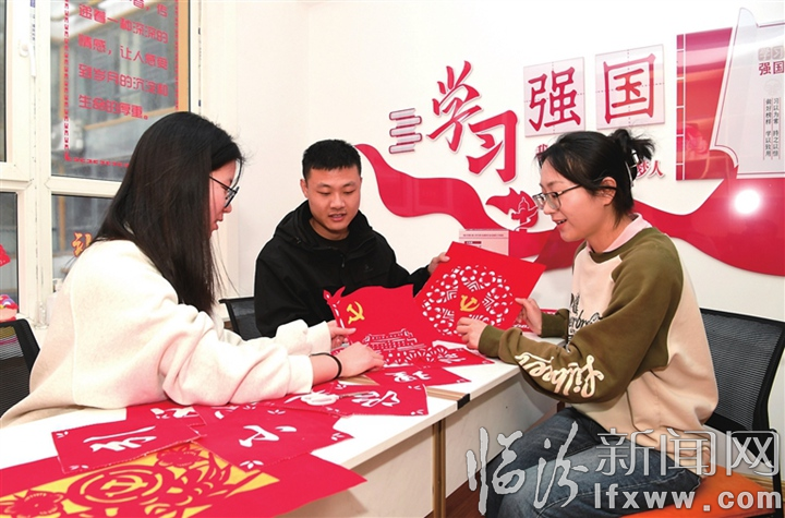临汾新闻网讯 近年来,尧都区铁路东街道三元社区积极整合资源,创建“学习强国”主题社区,依托第二书房“一老一小”服务站打造“学习强国”学习驿站,设立“学习阅读区”“学习活动角”“强国微课堂”,真正搭建党员群众学习交流平台,让党的创新理论“飞入寻常百姓家”。图为3月18日,该社区居民在活动室交流手工剪纸心得。