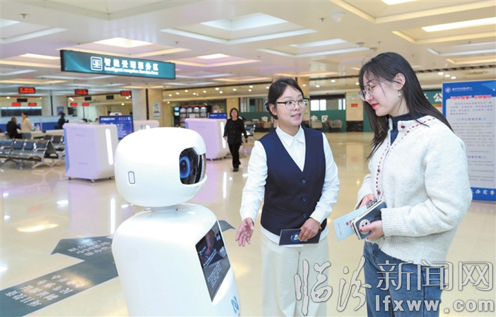 临汾新闻网讯 3月27日,在市政务服务大厅,工作人员在指导办事群众使用智能机器人。为不断提升服务水平,市行政审批服务管理局引入智能机器人,提供精准的智能问答、智能搜索、智能导办、一次性告知等服务,更好地引导企业和群众高效便利办事。