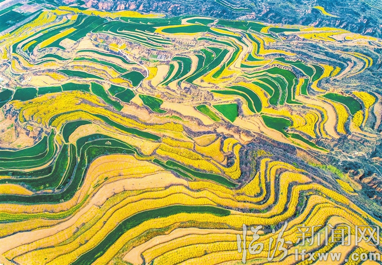 临汾新闻网讯 近年来,翼城县南梁镇践行绿色发展理念,依托双万亩连翘基地产业优势,把生态环境优势转化为生态经济优势,让“绿水青山”成为广大农民增收致富的“金山银山”。图为3月30日航拍的南梁镇连翘花海。