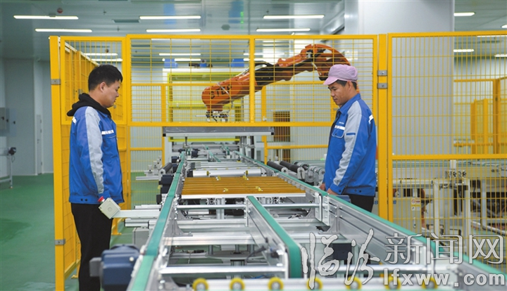 临汾新闻网讯 临汾晶旭新能源科技有限公司是一家以电力、热力生产和供应业为主的企业。目前,该企业年产1GW的一期项目已经投产,年产2.5GW的二期项目生产线也已调试完成,产品正在陆续下线出厂。图为工人正在加工光伏组件。