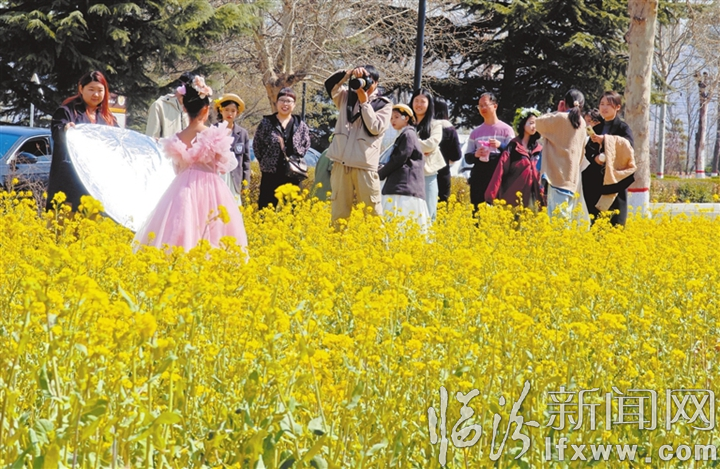春日时节,黄河一号旅游公路襄汾县丁村旅游公路沿线特色农业观光带的油菜花成片绽放,呈现出金黄色的花海,美不胜收,吸引了周边居民和各方游客前来打卡拍照。