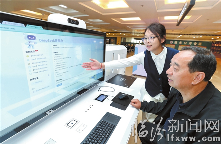 临汾新闻网讯 4月11日,在市政务服务中心办事大厅,工作人员在指导办事群众运用“DeepSeek智能办”办理相关业务。市行政审批服务管理局在优化政务服务新举措中,积极探索大模型技术应用政务服务领域,推出“DeepSeek智能办”——小汾智能客服,并依托人工智能技术,整合高频事项办理流程,AI“一站式”指引,办事时效显著提升。