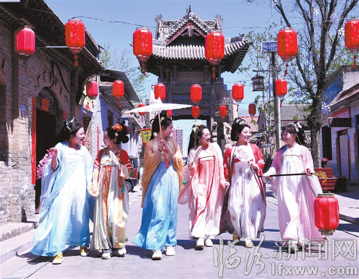 临汾新闻网讯 近日,翼城县唐兴镇古城景区内鼓乐喧天、彩绸飞舞,“唐风晋韵 魅力翼城”系列文旅活动暨“春翼盎然 美景来临”古城第十一届民俗文化旅游活动拉开帷幕。这场集非遗表演、民俗体验、文化展览于一体的文旅盛宴,为游客献上了一场跨越千年的文化之旅。图为游客们身穿古装漫游古城。