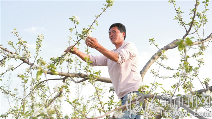 临汾新闻网讯 春风和煦,草木争荣,进入4月以来,有着“中国苹果之乡”之称的吉县,30万亩苹果树迎来开花季。迎春盛放的果花挂满枝头,一团团、一簇簇,粉嫩娇艳、如雪似霞。果农们利用晴好天气,进行人工授粉、疏花定蕾,提高果树坐果率和成果率,为实现苹果稳产、高产、优产打好基础。