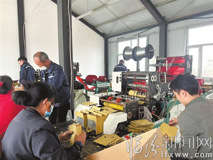 临汾新闻网讯 近年来,大宁县太古镇仪里村围绕苹果产业延链补链,采取“党支部+公司+农户”模式,办起了“仪果丰”果袋制造有限公司,其日产果袋60万个。该公司的建成投产在壮大集体经济的同时带动了当地村民在家门口就业增收。图为近日工人们在生产果袋。