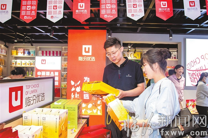临汾新闻网讯 5月10日,在市区“临汾优选”御景水城旗舰店,市民在选购临汾特色农产品。